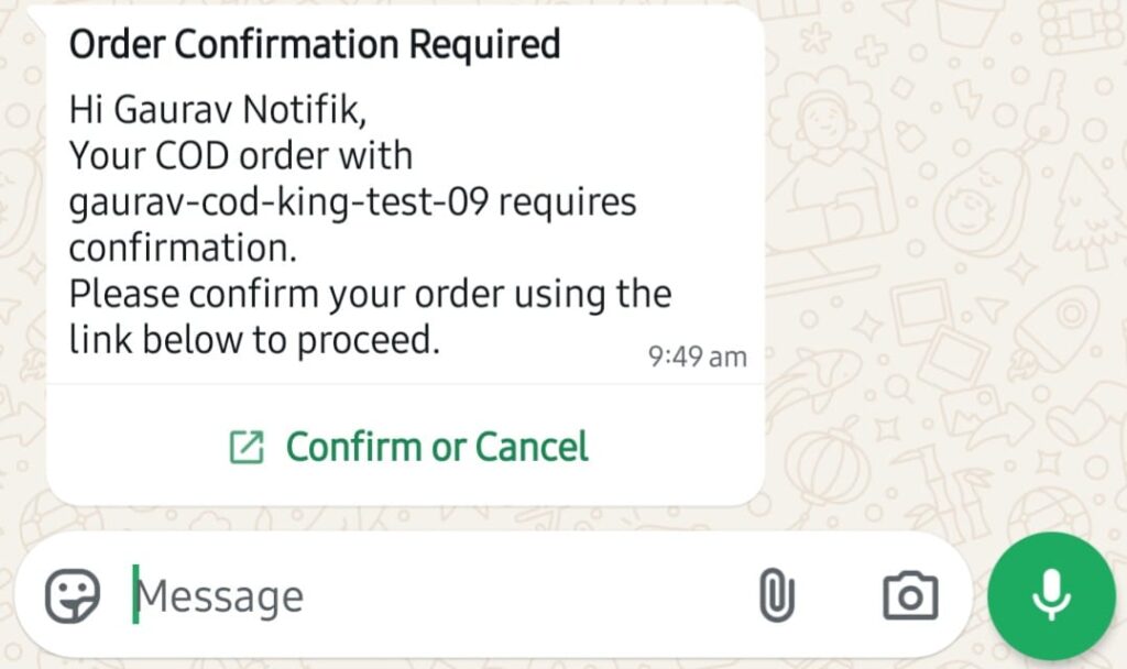For every COD order, COD King sends a WhatsApp verification link to confirm the customer’s order before it is processed.